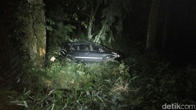 Sampai di turunan curam Desa Sendi, Pacet, sekitar pukul 18.00 WIB, MPV warna hitam ini mengalami rem blong. Mobil bernopol S 3171 JL ini pun melaju tak terkendali hingga terjun ke jurang dengan kedalaman sekitar 10 meter. Mobil terhenti setelah tersangkut bambu di dalam jurang.