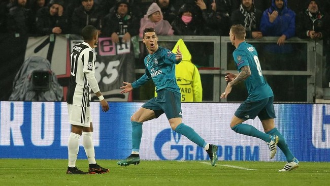 Turin - Real Madrid meletakkan satu kakinya di semifinal Liga Champions. Terbantu oleh dua gol Cristiano Ronaldo, Los Blancos melibas Juventus dengan skor 3-0 di kandang lawan.